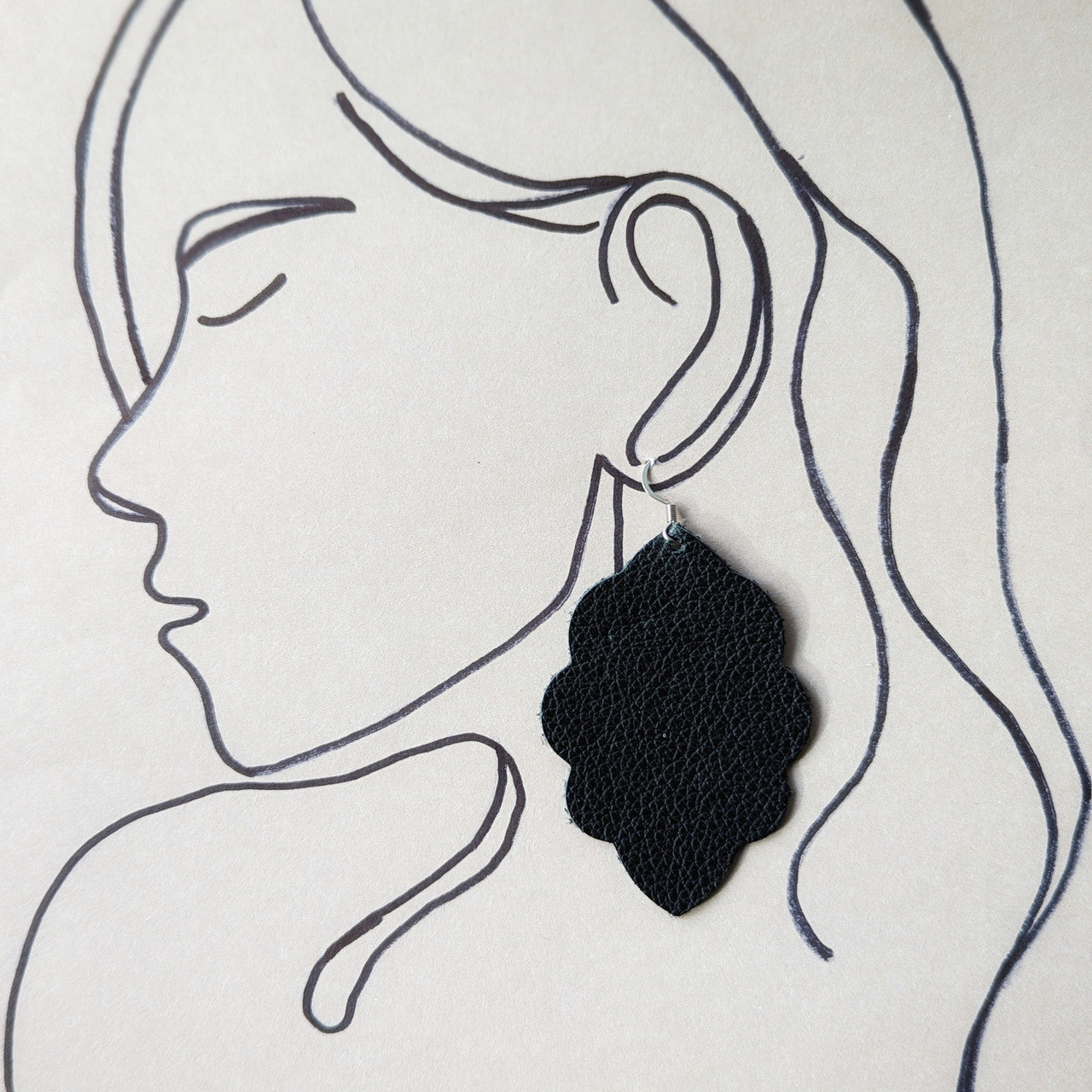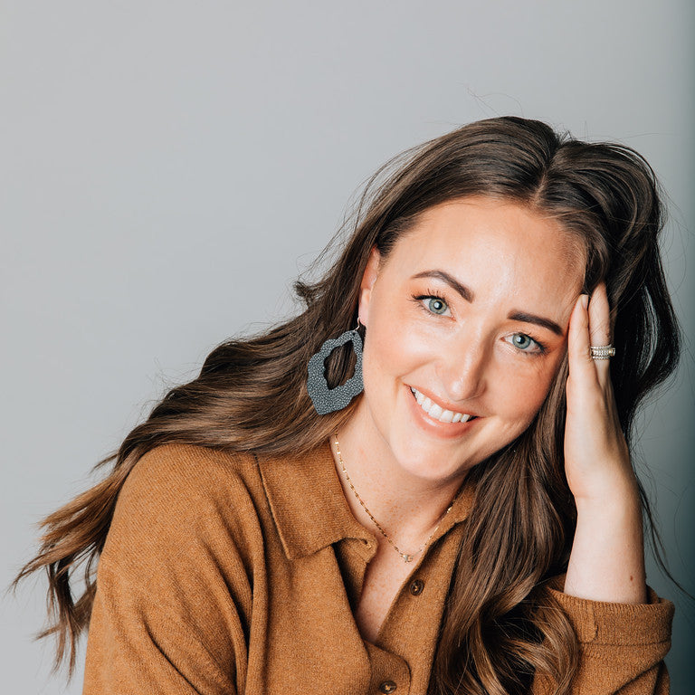 The Signature earring was our very first design! Steph sketched it and then worked with a manufacturer to develop the tool to cut it. She made three sizes, plus a cut out, so that you can wear the size and style you like in any leather we have! The Cut-out was a particularly special design because it creates the Signature Mini. When Steph's daughters started wearing earrings, they were able to match her! You can match your daughter, niece, sister, or granddaughter too!