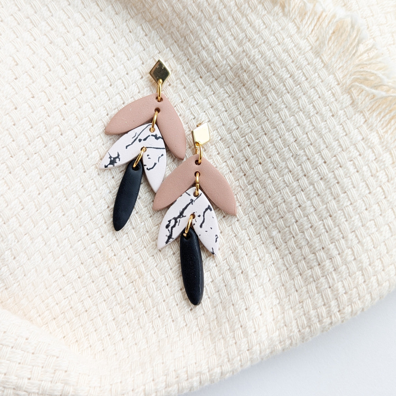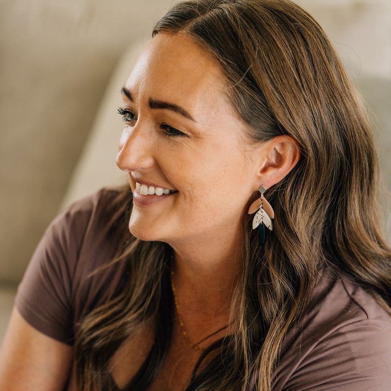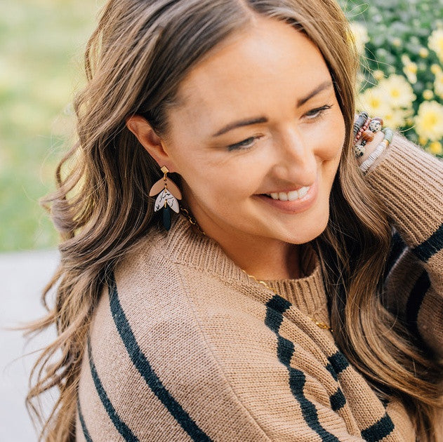 Black and tan are two neutrals that will always go together. So naturally, we needed them in an earring. Combine the perfectly paired neutrals with the feminine floral shape and diamond stud, and these earrings are a stunner.