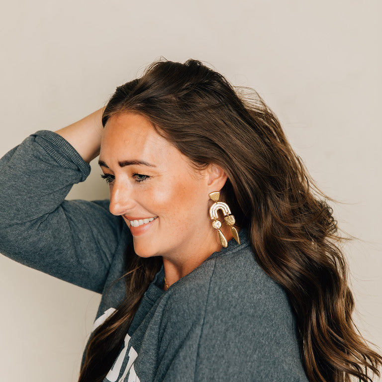 This statement earring is one that you can wear with your t-shirt and jeans or for a special occasion. They are the perfect earring for when you want to me just a little bit extra, and we love earrings that are a bit extra.
