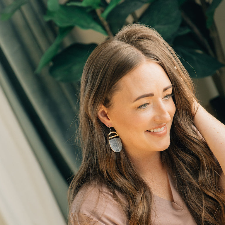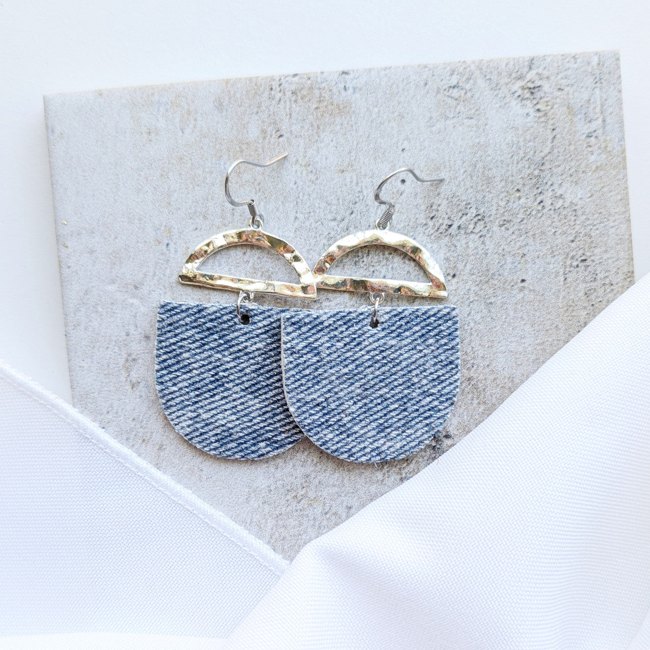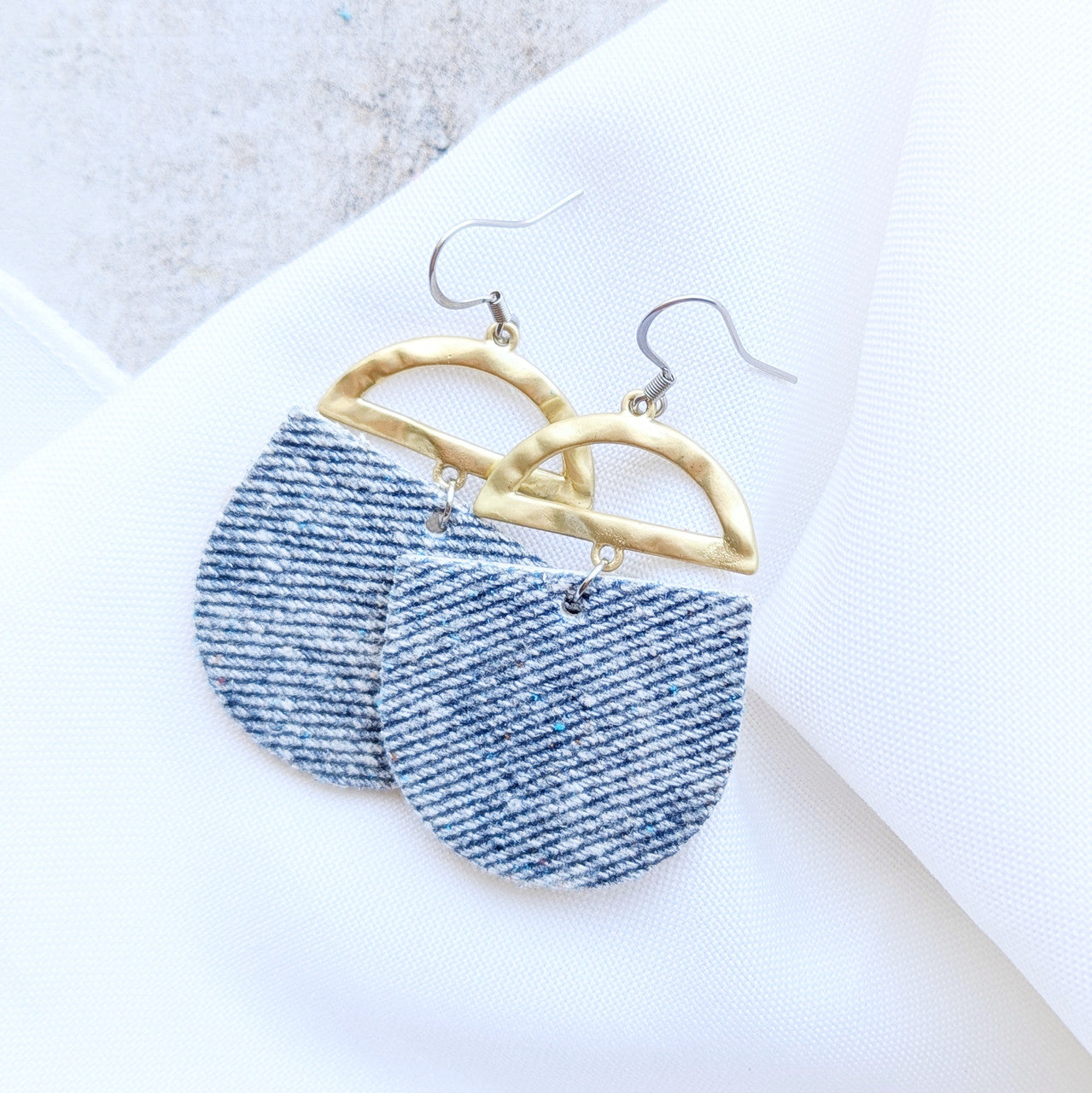 Denim is a go to classic. Like your most favorite pair of worn in jeans, the Denim Crescents are going to be a favorite go to earring. They can be dressed up for a special summer occasion or perfect for everyday wear. And to make them even more perfect for you, you can choose a gold or silver accent!