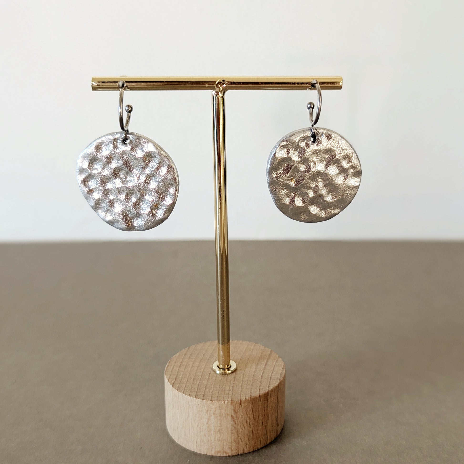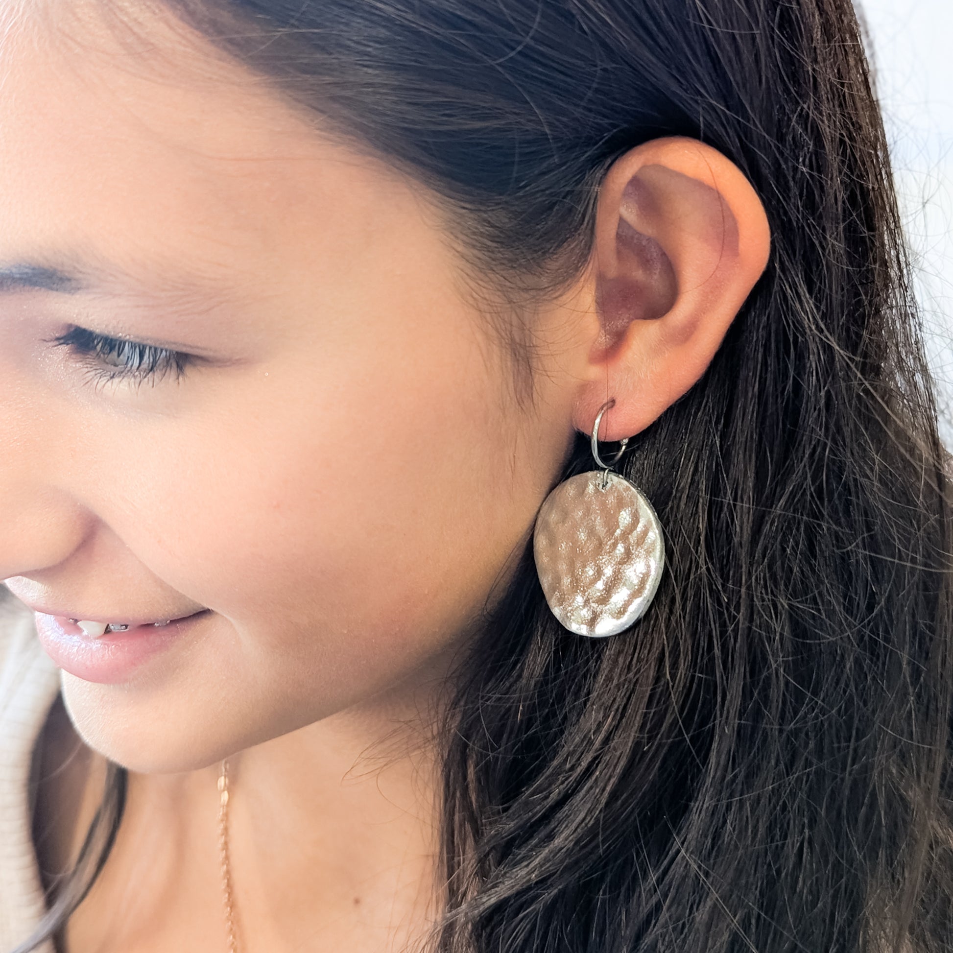 That’s why I created the Em Earrings — the same hammered glow you loved in gold, now in a soft silver wave that goes with literally everything.