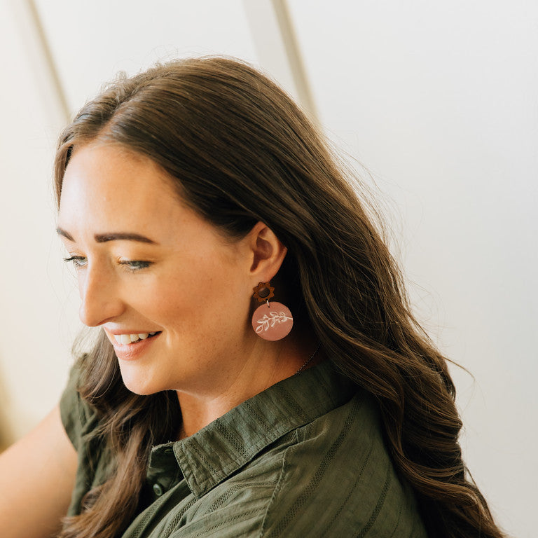 The Fae earring is all about minimal elegance and natural beauty. The terra cotta color mimics that of the ever so popular and loved terra cotta pots that hold the beautiful blooms of summer. The red in this clay color also is a nod to the beautiful red rocks of the southwest.
