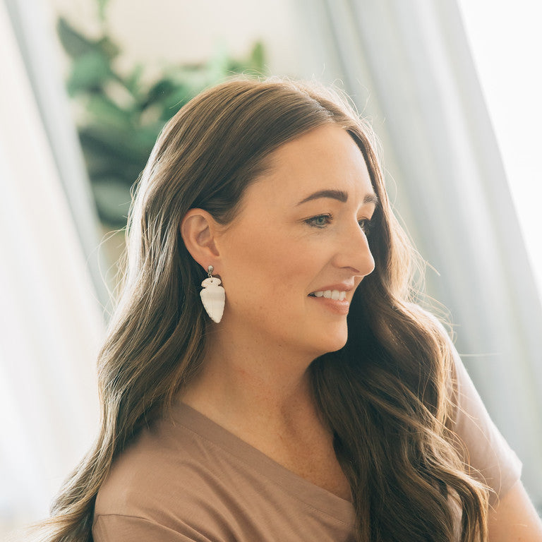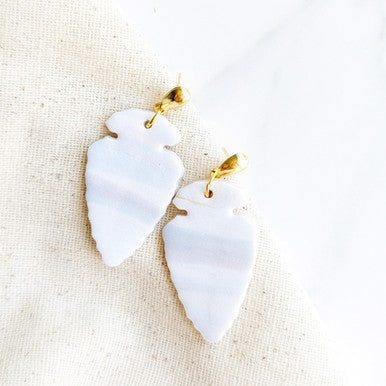 This design combines the traditional arrowhead shape, mixed with white, shimmer clay and some added color in the background to create depth in the design. The shimmer on the clay is stunning when the light hits it.