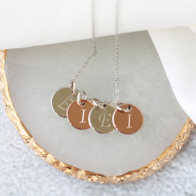 Elevate your style with our Custom Hand Stamped Initial Necklace—a personalized piece of jewelry that lets you wear your identity close to your heart. Choose from a silver or gold stainless steel chain and select one or more circle pendants in gold, silver, or rose gold, each beautifully hand stamped with your chosen initial.