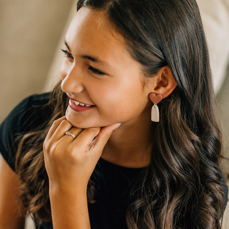 We all know that the heart is the core of a who a person is. These dainty heart earrings are all unique in their own way. With two shades of red mixed with flecks of silver and gold, each one celebrates its own beauty. They are the perfect reminder that we all have our own beauty within to celebrate.