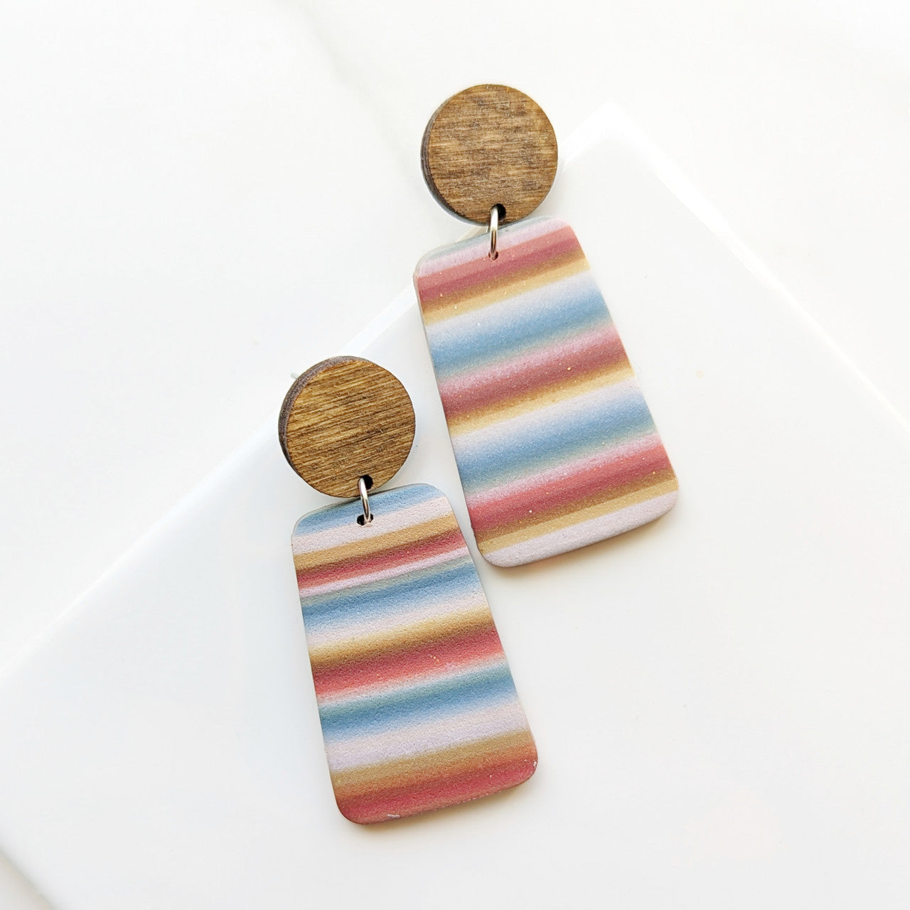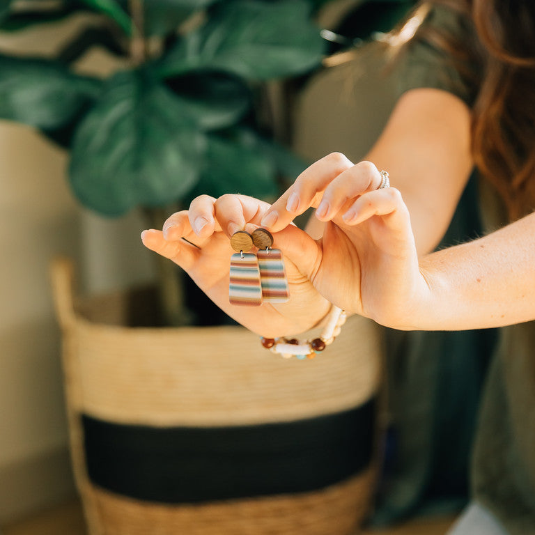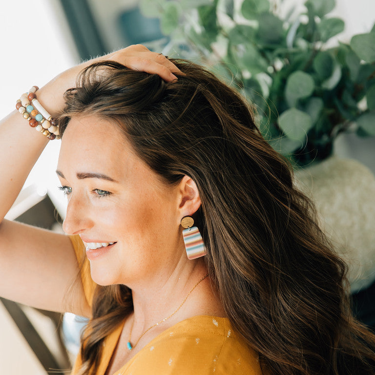 Our Serape earring is inspired by the rich cultural heritage of Mexican textiles so often found in the Southwest. The vibrant reds and blues & greens weaved blended together to create a stunning pattern.These earrings are perfect for everyday wear and celebrate individuality and artistry in every detail.