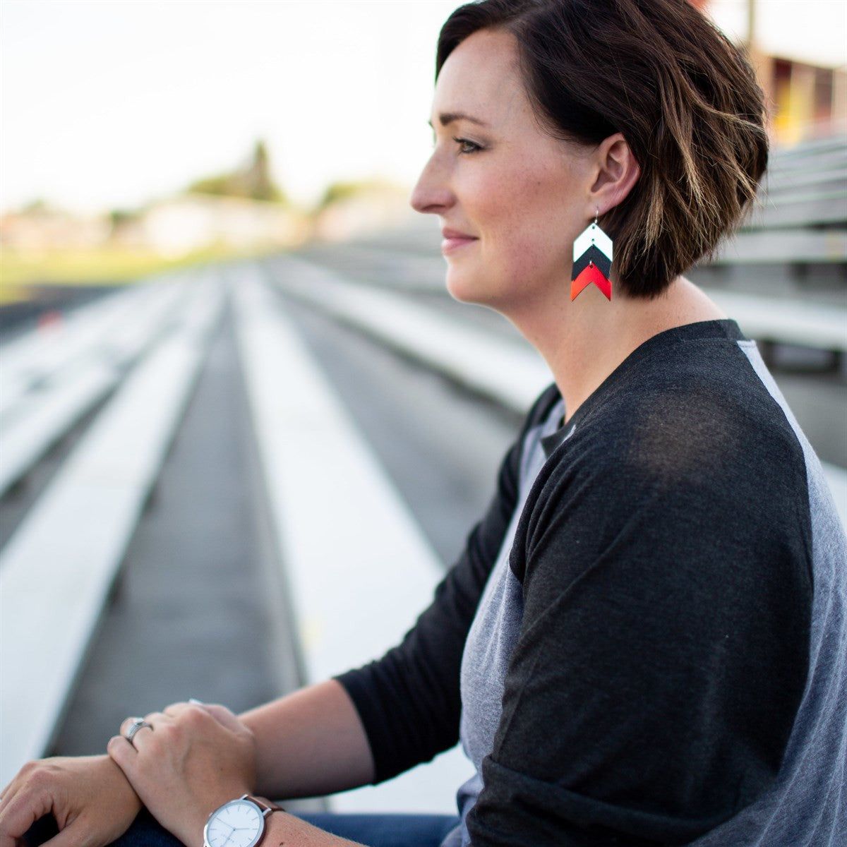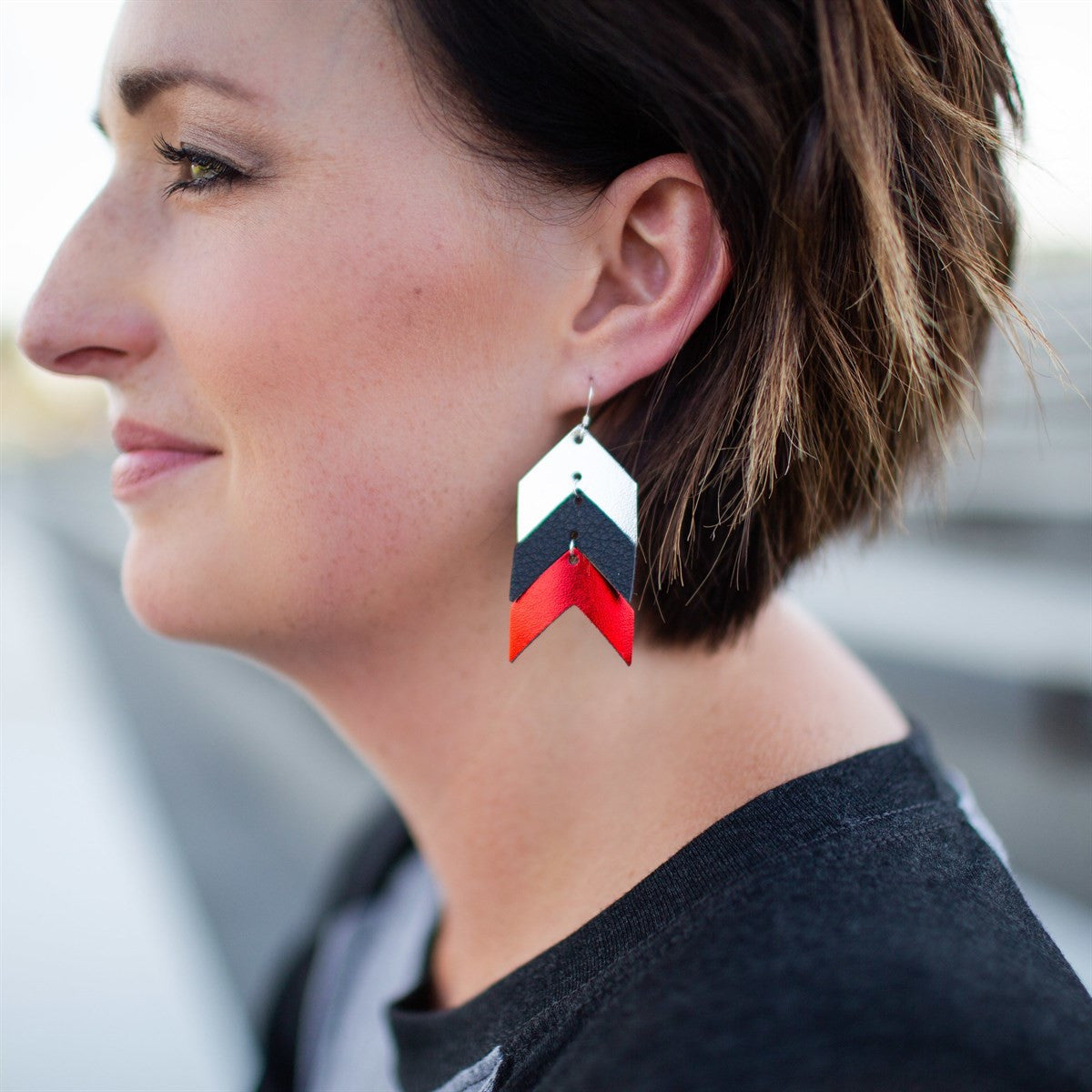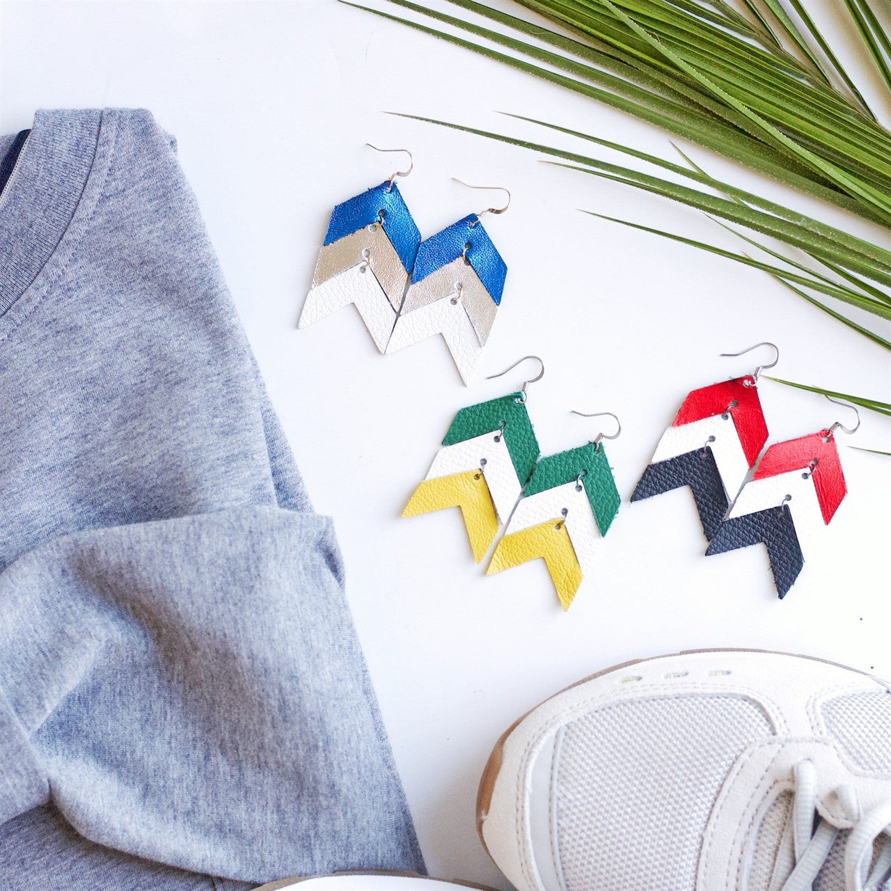 These earrings are handmade & genuine leather. They are weightless and super comfortable to wear. Their chevron design and multiple colors make them an eye catcher.