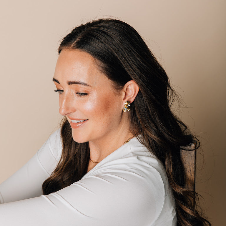 As flowers bloom in the spring, they grow together to create a spectacular garden. The Rae earring is a collection of mini clay flowers. Delicately placed together, to create a spectacular design. This floral huggie hoop is feminine and bold.